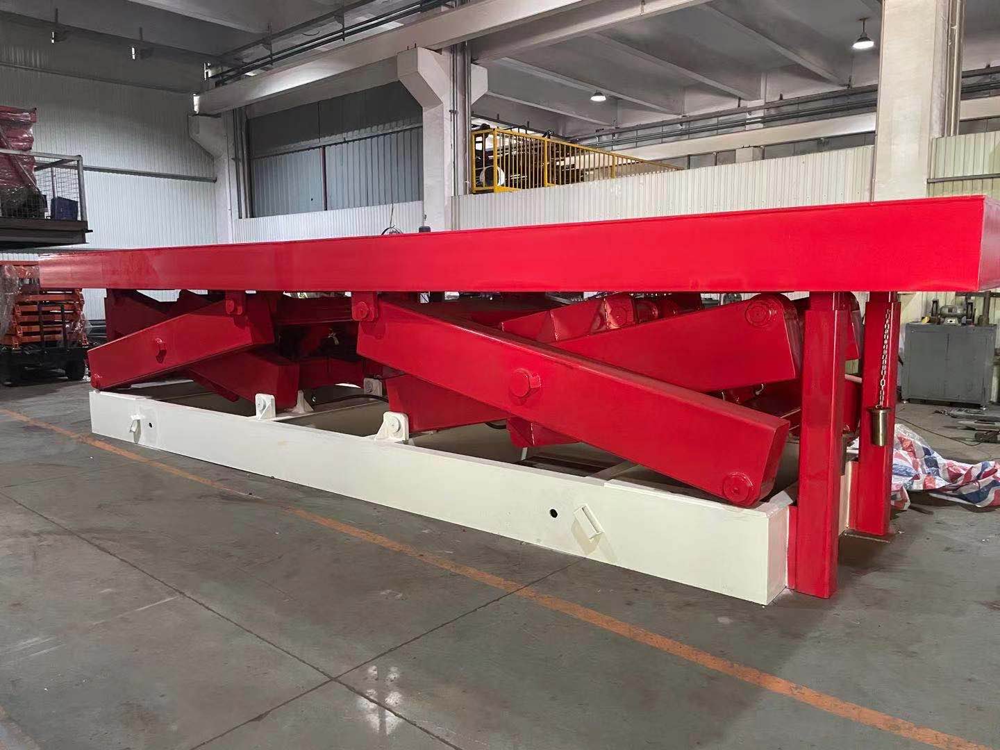 大噸位升降平臺(tái)是滿足超長(zhǎng)或者超重貨物的最好選擇。它能通過(guò)橫向設(shè)計(jì)2個(gè)或者多叉剪刀臂組合使用,可以保證工作狀態(tài)穩(wěn)定,從而減少人力上下搬運(yùn)的時(shí)間成本,輕松完成貨物高度差之間的舉升輸送。兩組剪刀叉同步升降,也可以用于機(jī)器設(shè)備檢修升降平臺(tái)。
