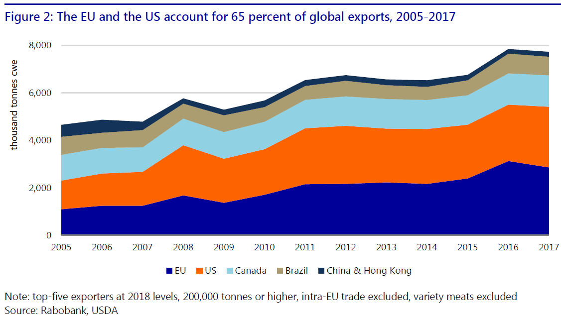 l 中國已成為豬肉和副產品出口最大對象國。其他亞洲國家的豬肉進口需求也在增長。豬肉進口產品除了低貨值種類還包括增值產品。
