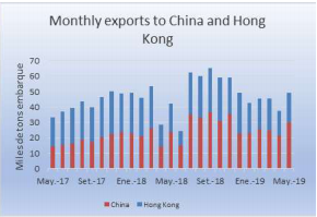 五月對中國的直接出口量達(dá)到去年十一月以來最高