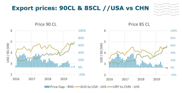 “2020年我們要將進口集中在中美洲國家和墨西哥”一位進口商在美周進口肉類委員會年度會議上說。由于該會議與中國舉辦的進博會時間沖突,來自澳洲和南美的出口商代表團數量很少,來自烏拉圭的肉類代表Las Piedra 和San Jacinto, Marfrig和Minerva多個國家的代表、以及貿易公司的代表參加了此次大會。會議上,烏拉圭肉協強調了牛肉到中國和美國的出口價格差異越來越小,澳洲牛肉到中國和美國的出口價格差異也越來越小,2019年差距已經趨于零差距。甚至出口到中國的85CL和90CL產品價格開始高于美國。出口商還提到了出口到中國的低成本、低門檻的問題,2016年-2017年,美國采購價格比中國高30%。