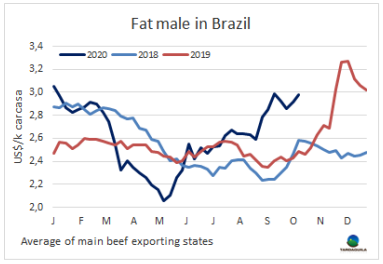 智利進口市場表現(xiàn)出上行跡象,一位巴拉圭出口商表示,20切全牛成交價4900-5100美元/噸,11月和12月的銷售前景樂觀。