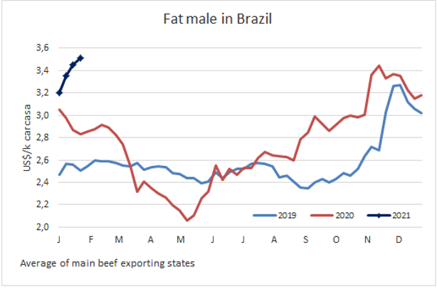 南美市場閹牛價格再次上漲