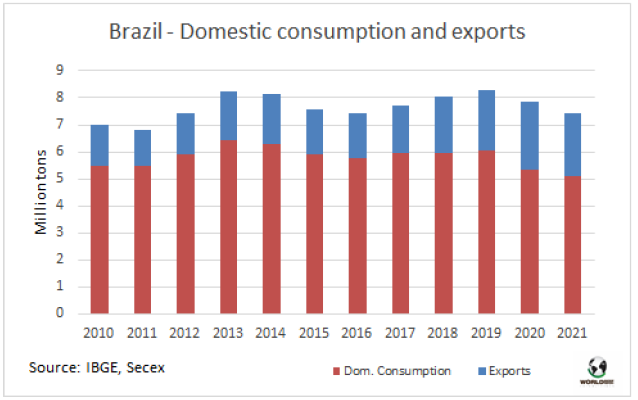 2021年第四季度巴西牛屠宰量下降了8%