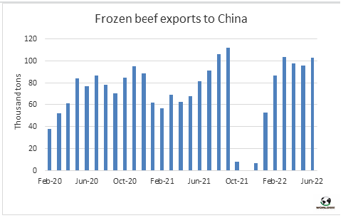 6月牛肉對(duì)中國(guó)出口量再次大幅增長(zhǎng)