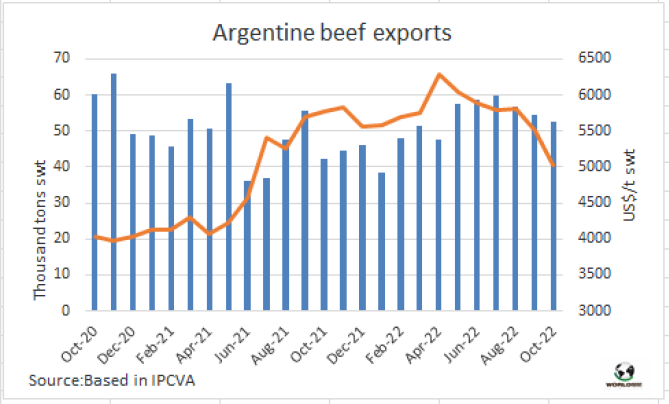 10月阿根廷牛肉出口量環(huán)比下降了6%,同比增長25%
