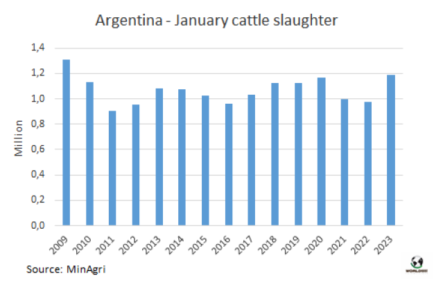 阿根廷1月牛屠宰量是2009年以來最高