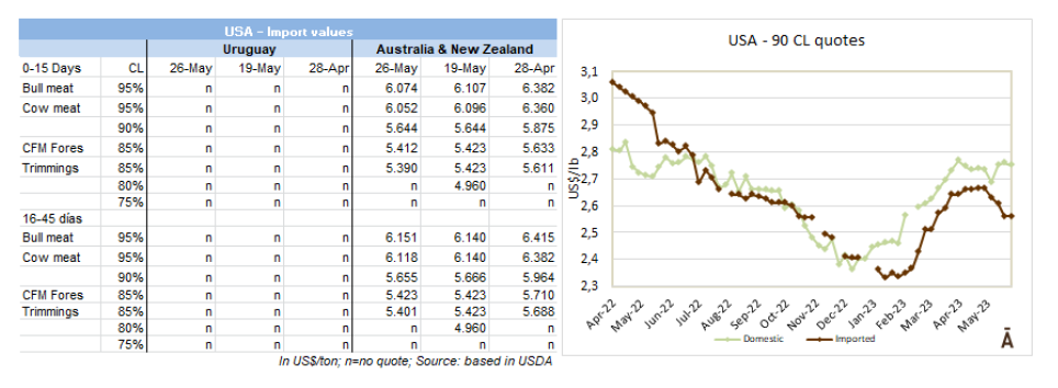 同時,巴西的9切的前部位肉的交易價格為$5,100-$5,200,巴拉圭的交易價格為$5,200-$5,400,交易量很低。這兩個國家的80VL碎肉的參考價格為$3,200-$3,300。