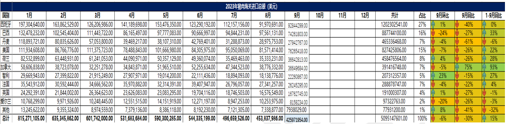 2023 年 9 月冷凍豬肉進口概況
