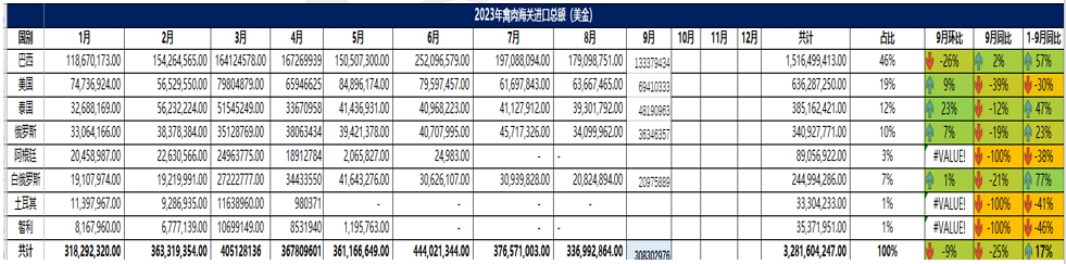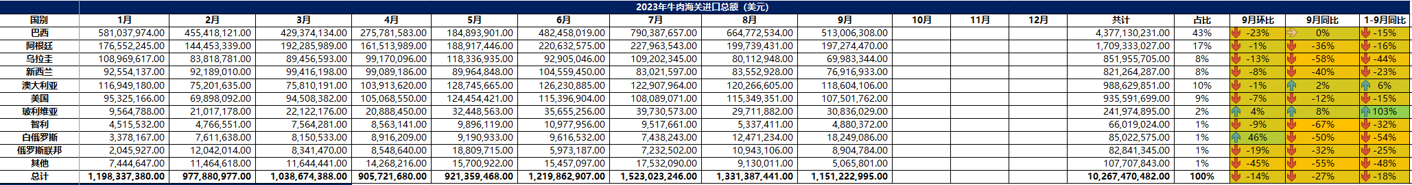 2023 年 9月冷凍牛肉進口概況