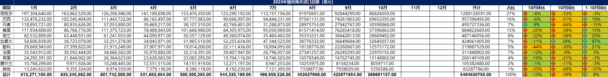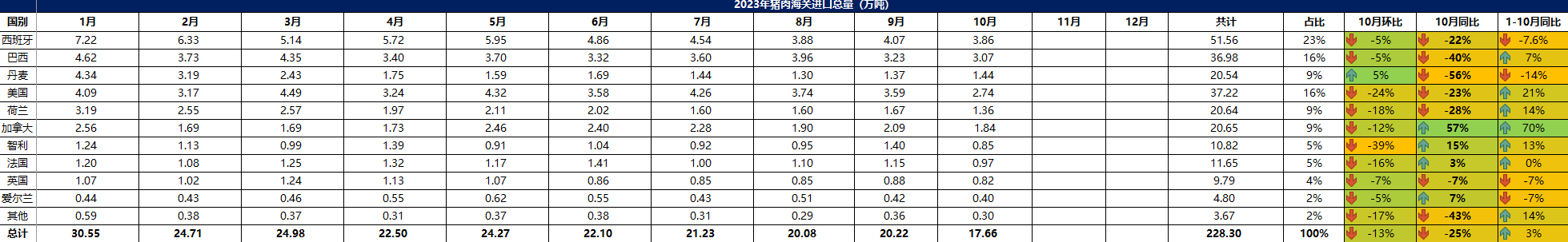 2023 年 10月冷凍豬肉進口概況