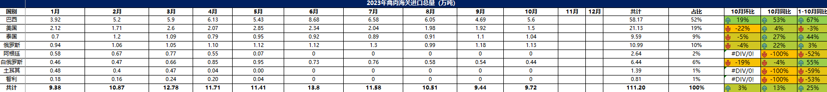 2023 年 10月冷凍禽肉進口概況