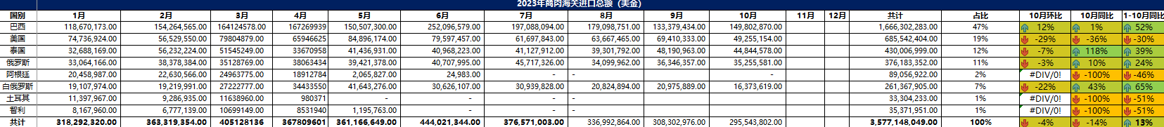 2023 年 10月冷凍牛肉進口概況