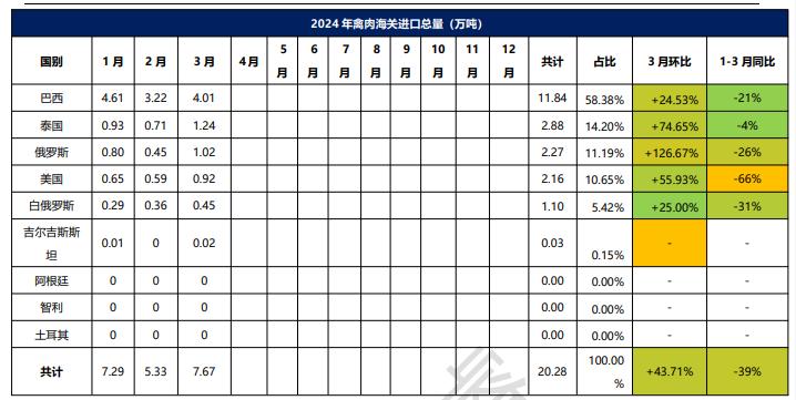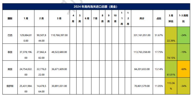 2024年1-3月冷凍禽肉進(jìn)口概況