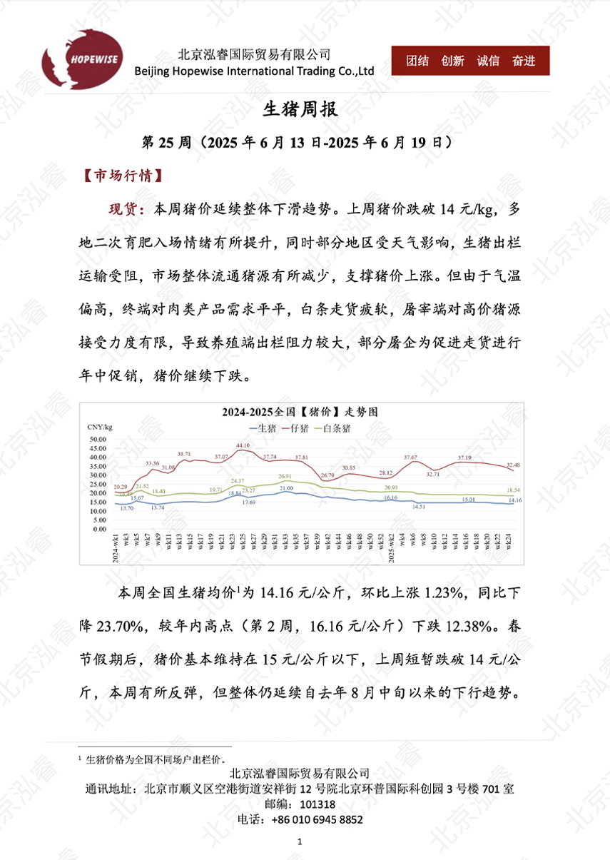 生豬周報 第 25 周(2025 年 6 月 13 日-2025 年 6 月 19 日)