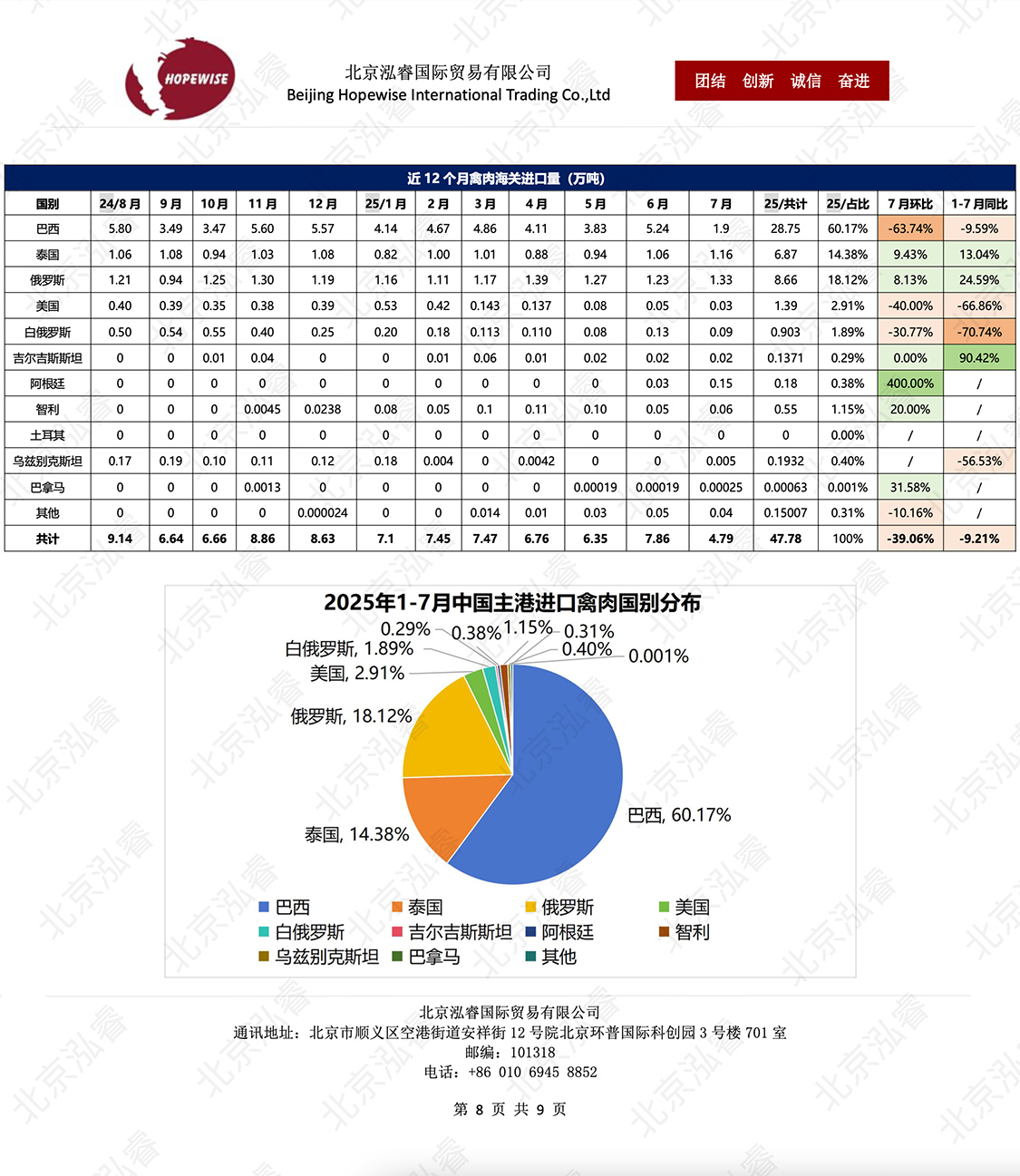 2025 年 1-8 月冷凍豬肉進(jìn)口概況