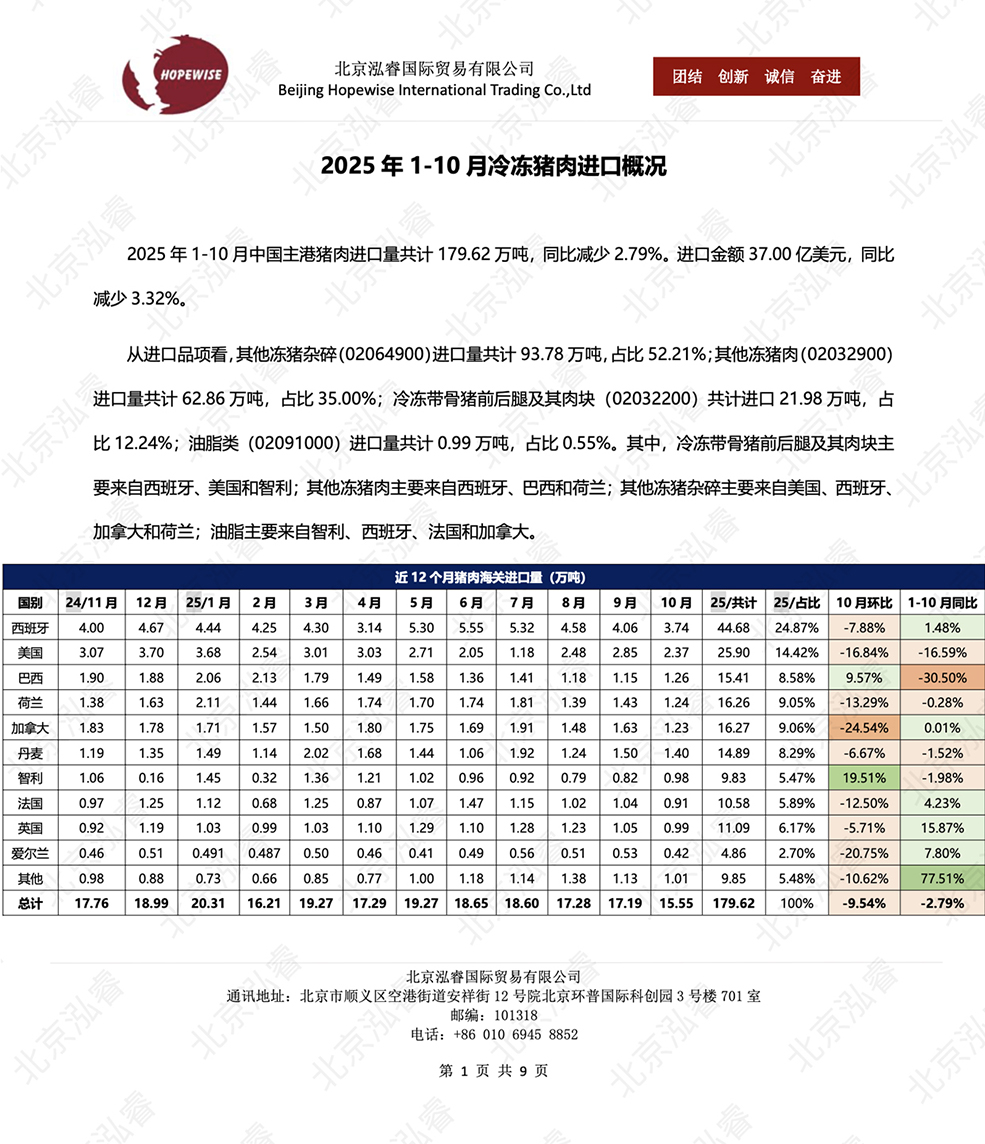 2025年1-10月冷凍豬牛禽肉海關(guān)進(jìn)口...