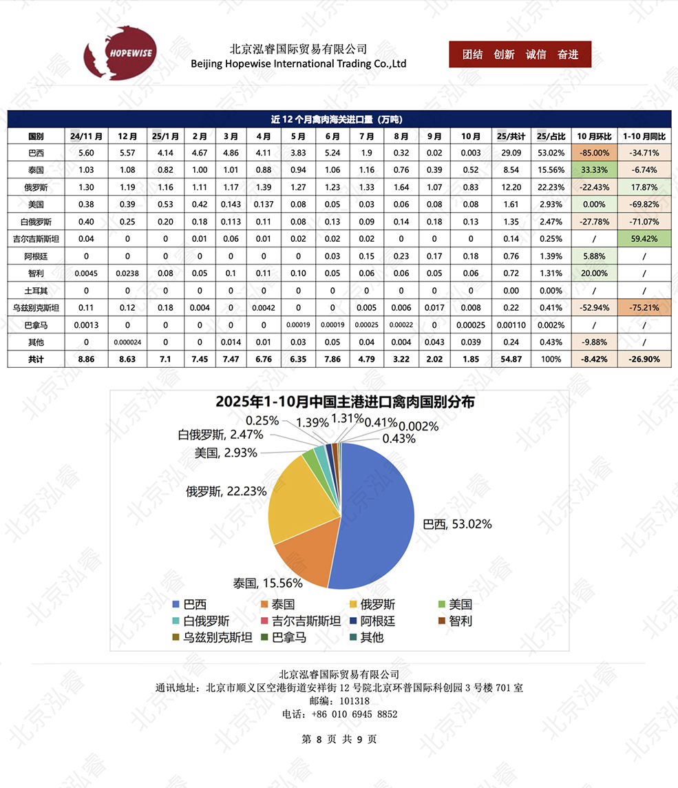 2025年1-9月冷凍豬牛禽肉海關(guān)進(jìn)口數(shù)據(jù)