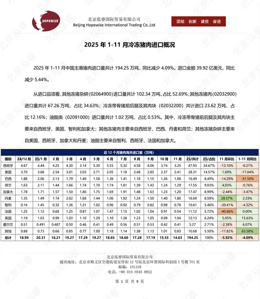 2025年1-12月冷凍豬牛禽海關(guān)進(jìn)口數(shù)據(jù)