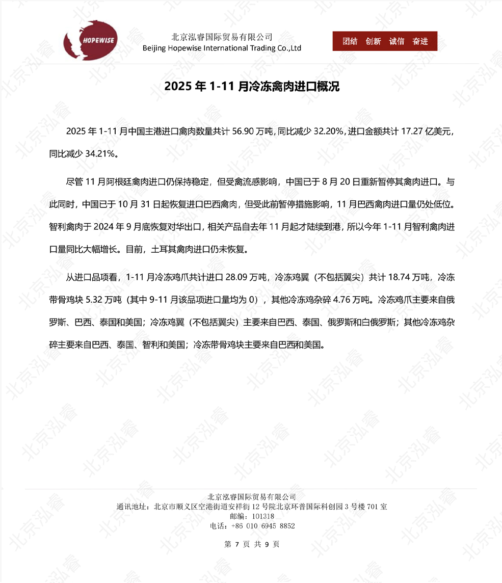 2025年1-11月冷凍豬牛禽肉海關(guān)進(jìn)口...