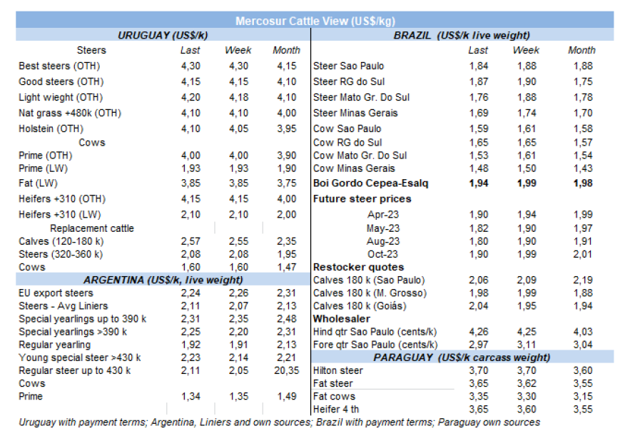 在巴拉圭,待宰公牛的最新交易價格為每公斤$3.65,但本周該行業(yè)停止購買,預(yù)計市場將面臨下行壓力。
