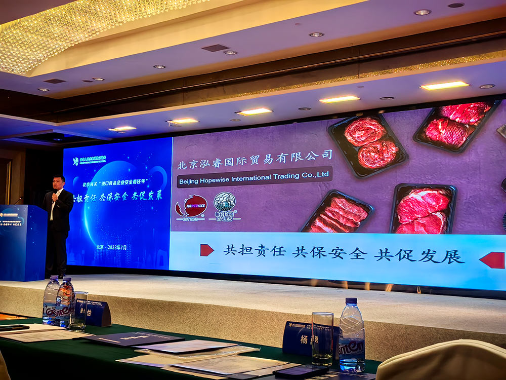 北京泓睿國際貿(mào)易有限公司總經(jīng)理?xiàng)钣伦鳛槠髽I(yè)代表發(fā)言,楊勇表示:北京泓睿國際貿(mào)易有限公司,是一家專注于全球優(yōu)質(zhì)肉品進(jìn)口、加工、分銷、新零售全鏈條解決方案供應(yīng)商,公司業(yè)務(wù)涉及豬、牛、禽肉三大品類。結(jié)合中國肉類食品、餐飲、新零售等行業(yè)發(fā)展需求,我司建立了全新的肉類食品加工基地,采用先進(jìn)的設(shè)備,實(shí)現(xiàn)自動化生產(chǎn),可提供安全標(biāo)準(zhǔn)、品質(zhì)穩(wěn)定的定制化進(jìn)口肉品解決方案。