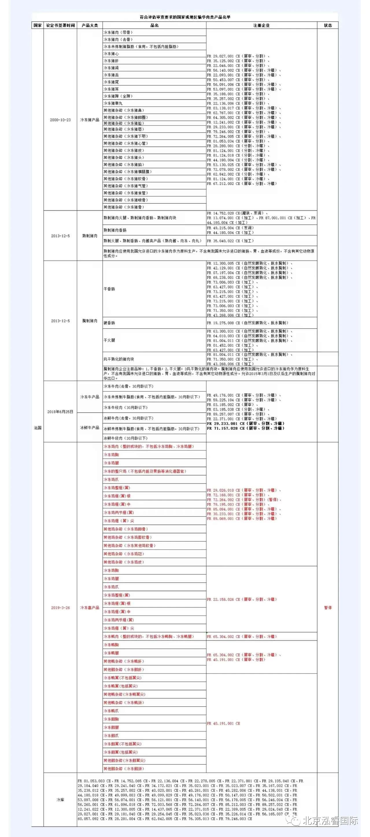 符合評估審查要求的國家或地區(qū)輸華肉類產(chǎn)品名單更新