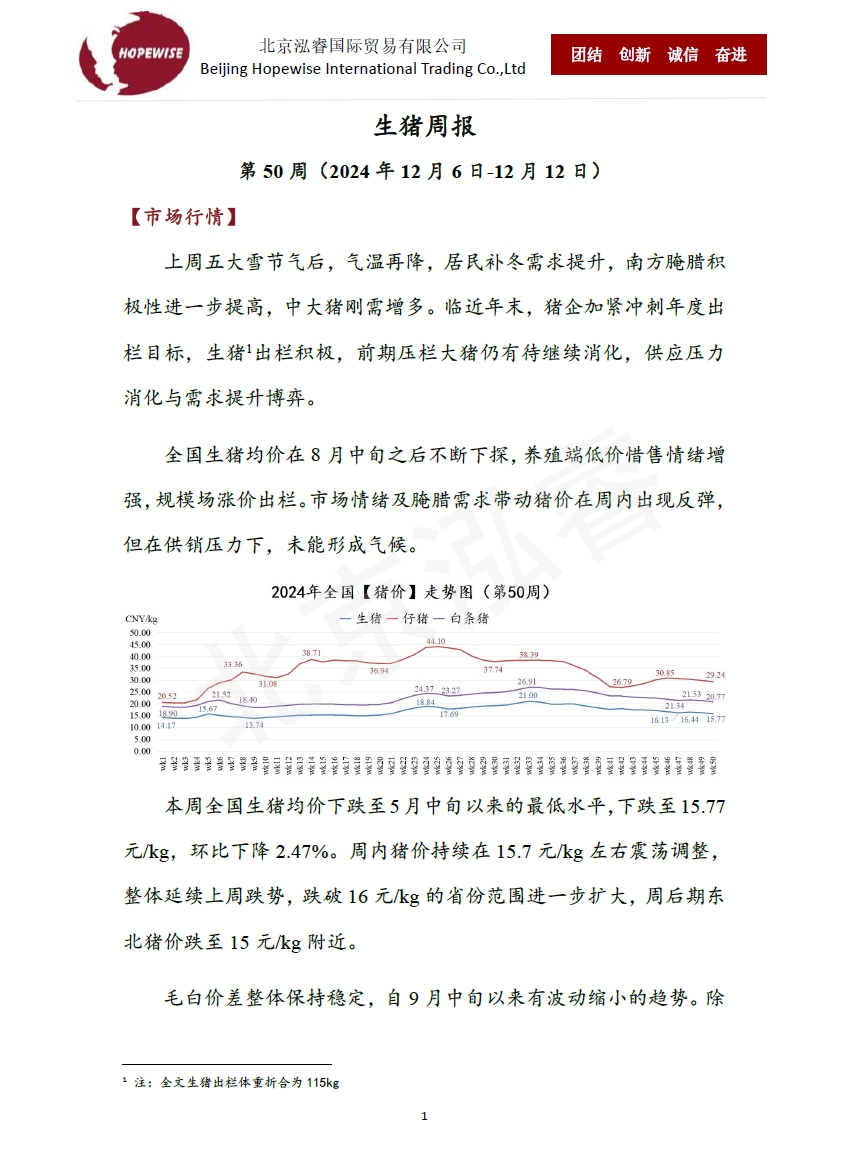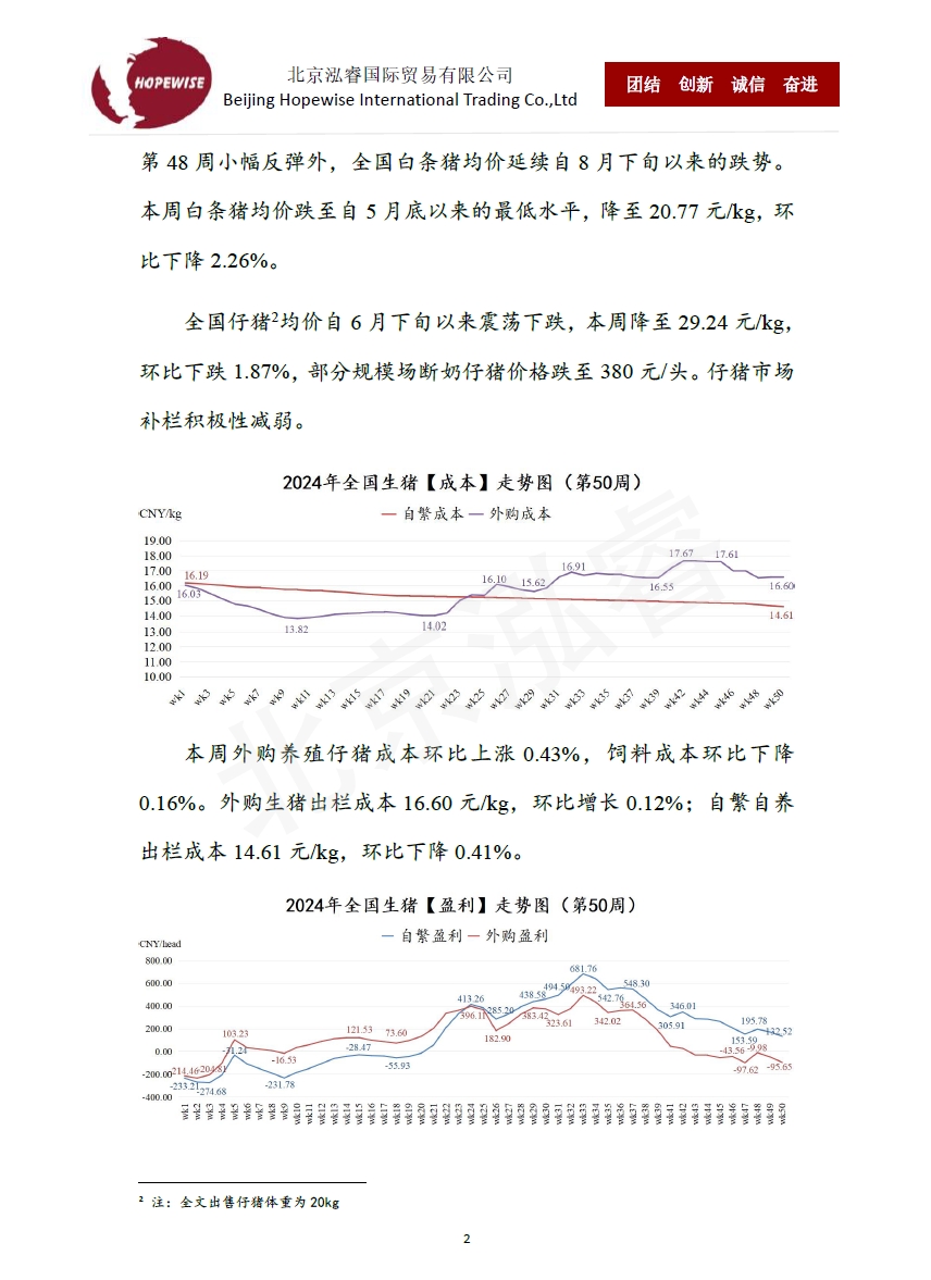 生豬周報(bào)第50 周(2024 年12月6 日-12 月12 日)