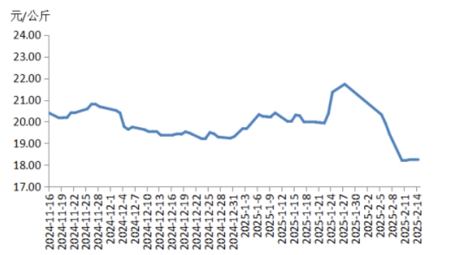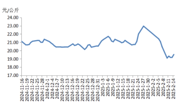 本周華中地區(qū)豬肉價(jià)格環(huán)比明顯下跌,周內(nèi)價(jià)格先跌后漲。前半周,規(guī)模養(yǎng)殖場(chǎng)的生豬出欄量增加,散養(yǎng)戶將春節(jié)節(jié)前壓欄豬源陸續(xù)釋放,使得生豬及豬肉供應(yīng)充沛,而豬肉消費(fèi)表現(xiàn)一般,元宵節(jié)提振力度較弱,致使屠宰企業(yè)訂單銷售速度不快,豬肉價(jià)格明顯下跌。后半周,各院校開學(xué)后食堂訂單小幅增多,經(jīng)銷商采購(gòu)積極性增加,帶動(dòng)豬肉價(jià)格有所反彈,幅度有限??傮w看,本周華中地區(qū)豬肉周均價(jià)明顯低于上周。