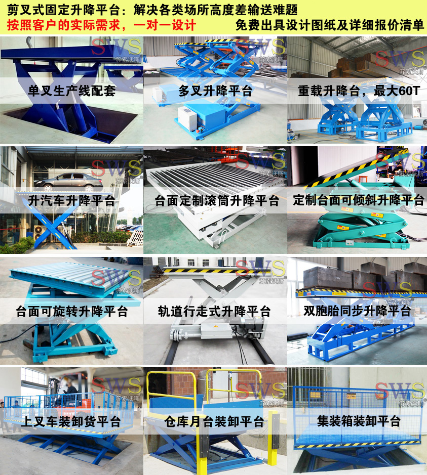 它普遍用在工件裝配時調(diào)節(jié)工件高度,大型設(shè)備裝配時部件舉升,大型機(jī)床物料上料、下料以及機(jī)器保養(yǎng)、定位、組裝、工件裝配、倉庫、車庫、工作車間等生產(chǎn)流水線高度差之間貨物運(yùn)送;